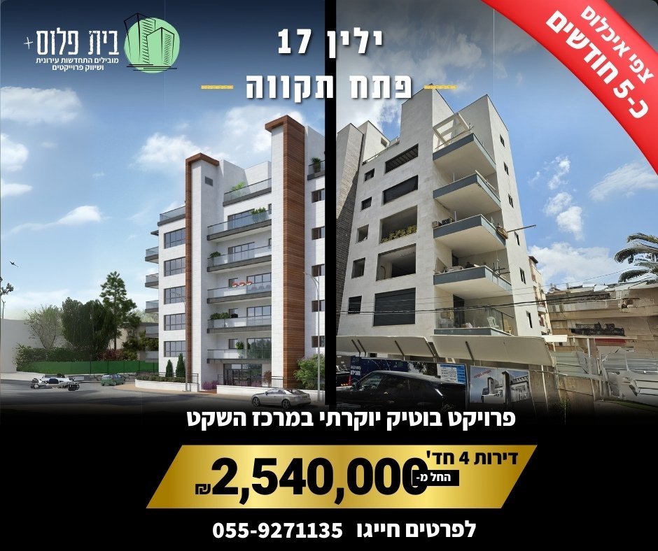 ✨ ילין 17 – פתח תקווה ✨פרויקט בוטיק יוקרתי בשלבי ביצוע מתקדמים, בלב שכונת המרכז השקט ובסמוך למרכז העיר.